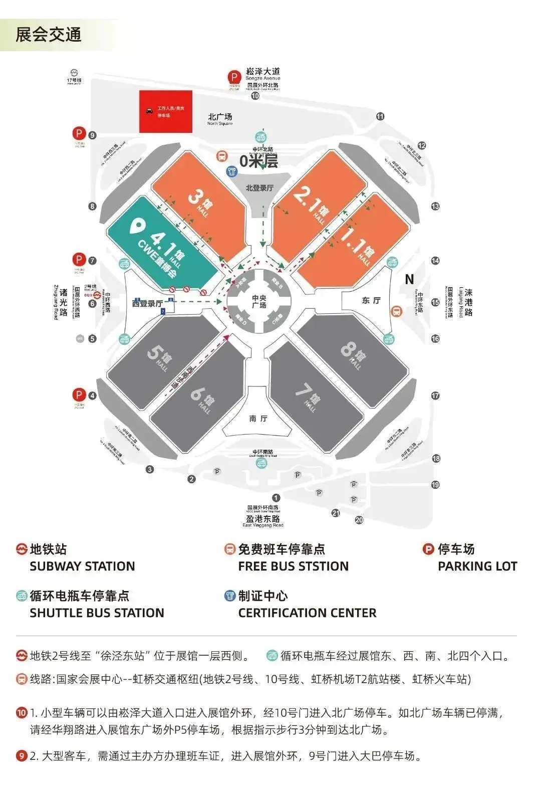 The recommended parking lot is North Plaza (No. 333, Songze Avenue); enter the parking lot from Gate 10 on Songze Avenue.