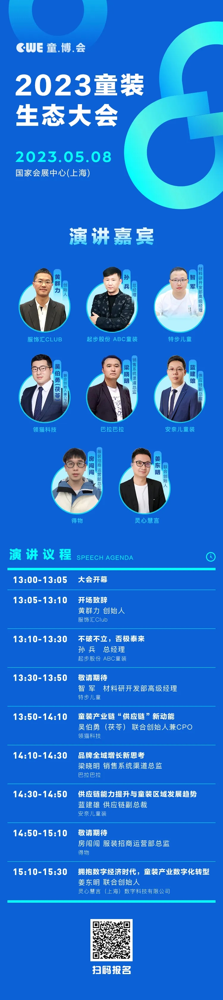 The 2023 CWE Children's Expo will gather the wisdom of children's clothing from all over the world, and work with the Fashion Club and the Landing Mother and Baby Club to jointly create the 2023 Children's Wear Ecological Conference to help domestic children's wear brands enhance their core competitiveness. The conference will be held on May 8th in the North Landing Hall of the National Exhibition and Convention Center (Shanghai), inviting more than 1,000 children's wear industry practitioners including heads of industry associations, heads of children's wear brands, heads of children's wear supply chains and products, global supply chain management experts, and children's wear designer agencies from all over the country to participate, and discuss the innovative development of children's wear under the new environment and new consumption pattern through keynote speeches, experience exchanges, roundtable dialogues, media interviews, etc.!